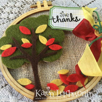 ReplyDeleteFantastic altered hoop Karen. I love the different textures, the colors... the ribbons... wonderful fall scene and what a great take on the photo. Thank you for playing along with us at the Curtain Call Inspiration Challenge.